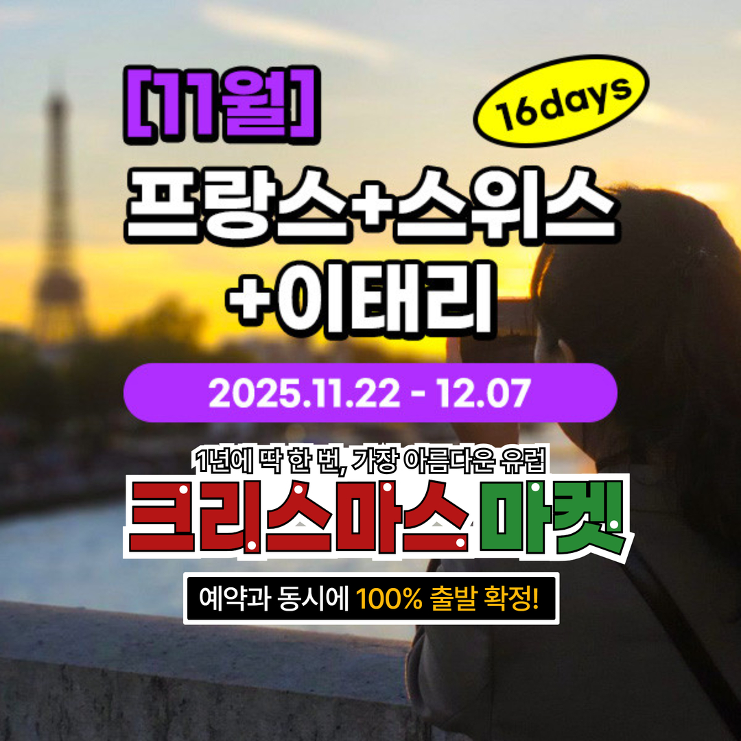 ** 마감임박 : 남2 여1 ** [83기] **크리스마스 마켓** 11월 프랑스+스위스+이태리 16일 11월 22일 ~ 12월 07일